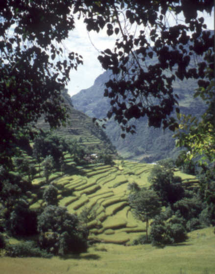 valley is wide, the temperatures ar warm and you walk along rice paddys.
