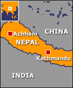 von tausenden Maoisten, die Stadt Mangalsan im Distrikt Achham an. Acham liegt ganz im Westen von Nepal, wo die Maoisten ja schon länger größere Landesteile beherrschen.Neben Armee- und Polizeiposten wurden