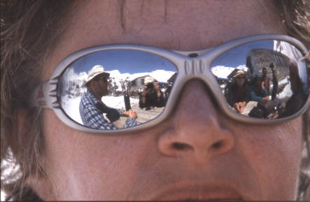 anpassen zu können. Im hintergrund der Gangapurna und deie Annapurna III. Wer hier über den Pass hüpfen könnte, würde auf dem Gletscher auf der anderen Seite bis Manang rutschen.