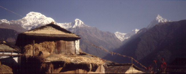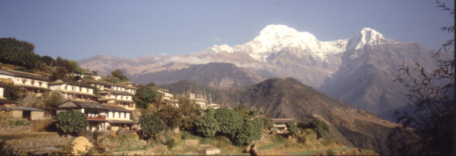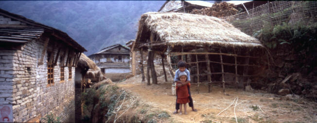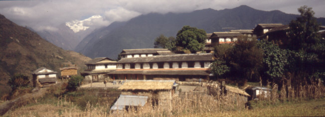 Eher untypisch liegen hier die Gurungdörfer konzentrisch in einem Haufendorf