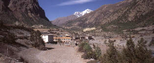 Der erste Ort ist Pisang (3100m). Während unten am Fluß