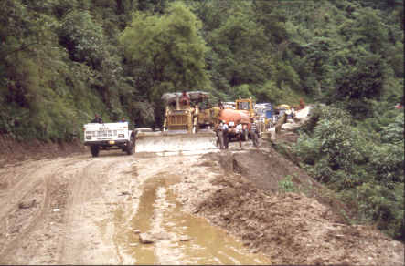 unterbrochen. Selbst wenn man mit Planierraupen einen Weg freigeschaufelt hat, stauen sich die Fahrzeuge über Kilometer und manchmal braucht man sogar noch im Oktober zwei Stunden um so eine Stelle zu passieren.