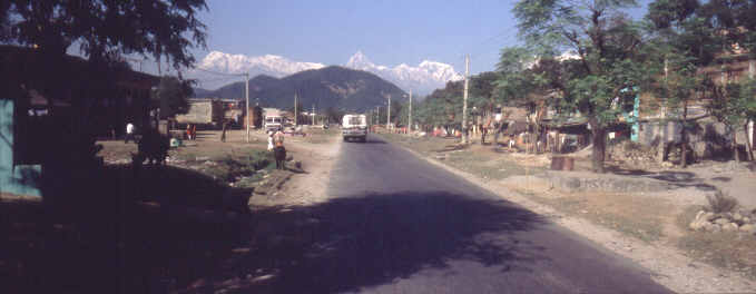 Schon eine Weile vor Pokhara sieht man die überwältigenden Berge der Annapurnagruppe