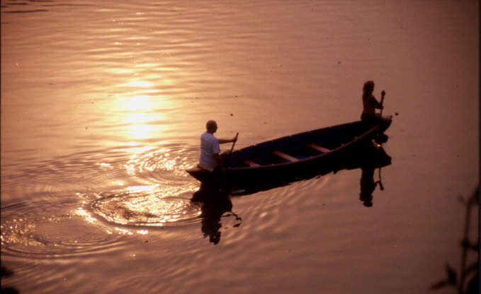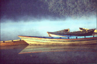 Wenn man sich ein Böotchen mietet, hat man großartige Ausblicke auf Pokhara und das ganze Annapurnamassif