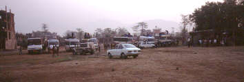 Jeden Morgen sammeln sich im noch kühlen Frühnebel Ca 15 Touristenbusse am Kantipath, die dann
