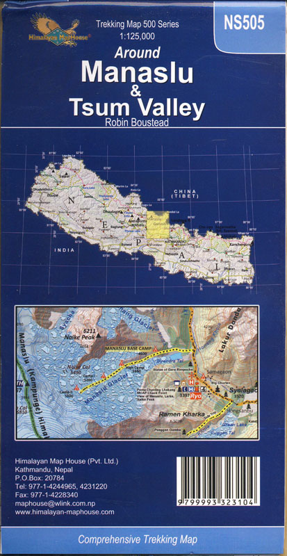 Manaslu , Tsum Valley und Ganesh Himal NS 505 Manaslu & Tsum Valley. Maßstab 1:125.000 Die Karte deckt den ganzen Manaslutrek ab, entweder ab Arughat Bazar oder von Gorkha über den Rupina La, Über den Larkya La kommt man dann in das Marsyangi Tal der Annapurnarunde und der Weg ist bis Besisahar eingezeichnet. Im Nordosten des Treks kann man dann einen Abstecher in dass wenig berührte Gebiet von Tsum Valley machen Rückseite der Karte Ansehen in amazon NS 521 Manaslu Base Camp 1:60.000