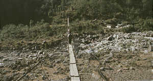 Jetzt ging die Straße wieder herab herunter zum Fluss Tamba Kosi. Nach dessen Überquerung hofften wir auf weniger Problem, da wir dann im Gebiet der