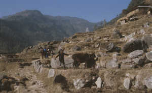 wo Nachts die Maoisten kamen, und die Dorfbewohner zwangen, Steinmauern aufzubauen.