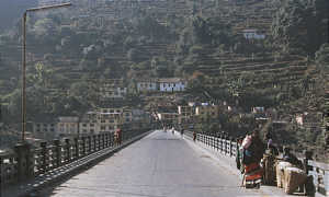 Dolalghat, einer kleinen Stadt mit einer großen Brücke über den Sun Kosi.