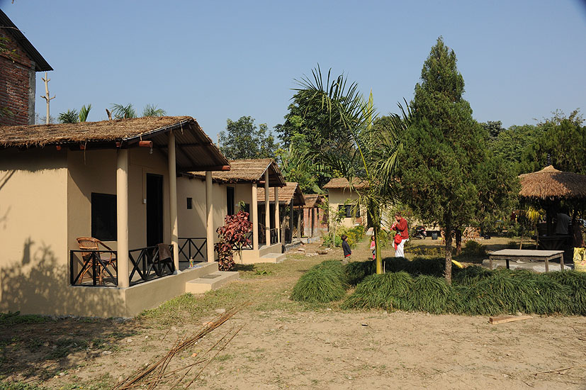 Hier finden sie auch die Tharu Lodge, die leider noch keine eigene Webseite hat. In einen Garten, sind viele kleine Häuschen im Tharustil mit Lehmwänden gebaut. es gibt