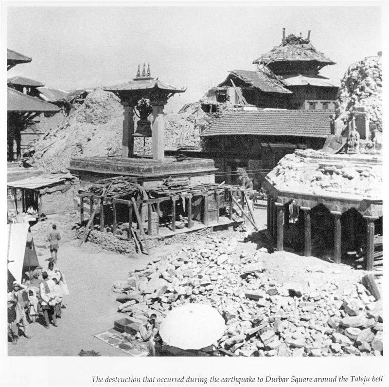 Nähe des Everest. http://cires.colorado.edu/~bilham/HimalayanEarthquakes/1934BiharNepal/1934earthquake . Wenn man heute die damalig Zerstörung ansieht, kann man erahnen, wie es heute aussehen würde http://www.thecosmosphere.com/?p=41 . Da ein großer Teil der Häuser der Altstadt zerstört waren, wurde die Gelegenheit genutzt eine breite und “moderne” Zufahrtsstraße zum Durbar Square und damaligen Königsplalast zu bauen. sie heißt