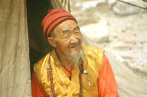 Mönch auf dem Weg nach Tibet am Nangpa la