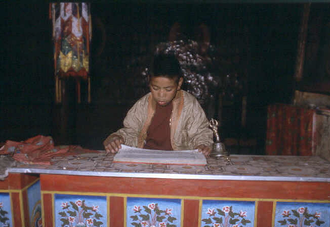 Der kleine Mönch zeigte uns recht stolz, wie ernsthaft er seine Studien betreibt und las uns aus den Texten vor