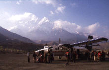 wieder zurück. Denn aufgrund der vormittags einsetzenden Winde, kann man nur am frühen Morgen landen oder starten. Manchmal bläst im Dezember der Jetstream so tief, dass er an die Berge des Daulagiri- und