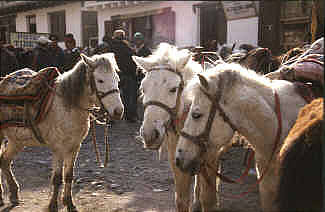Überall im oberen Kali Gandaki Tal trifft man die robusten Mustang Ponys.