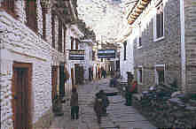 die Hauptstraße wie in Marpha mit Platten gepflastert.