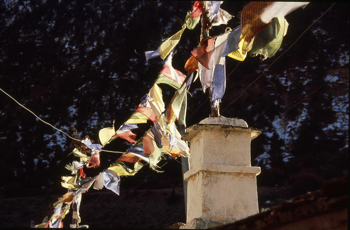 i love the many prayer flage in upper pisang which start shining when the sun is illuminating them.