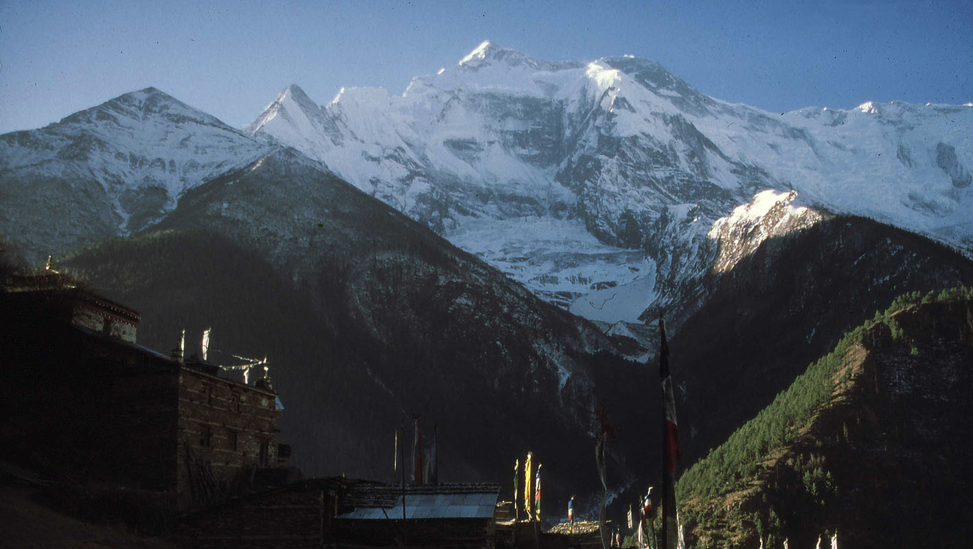 upper Pisang is dominated by the impressive Annapurna 2 ond the other valley side.