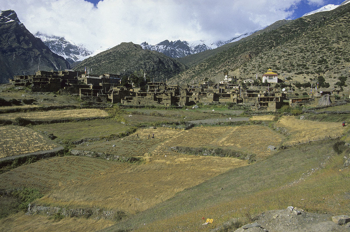 and buckwheat are the predominant crops. Also you will find some potatoes. Coming down the yellow roof of the gompa is a good landmark.