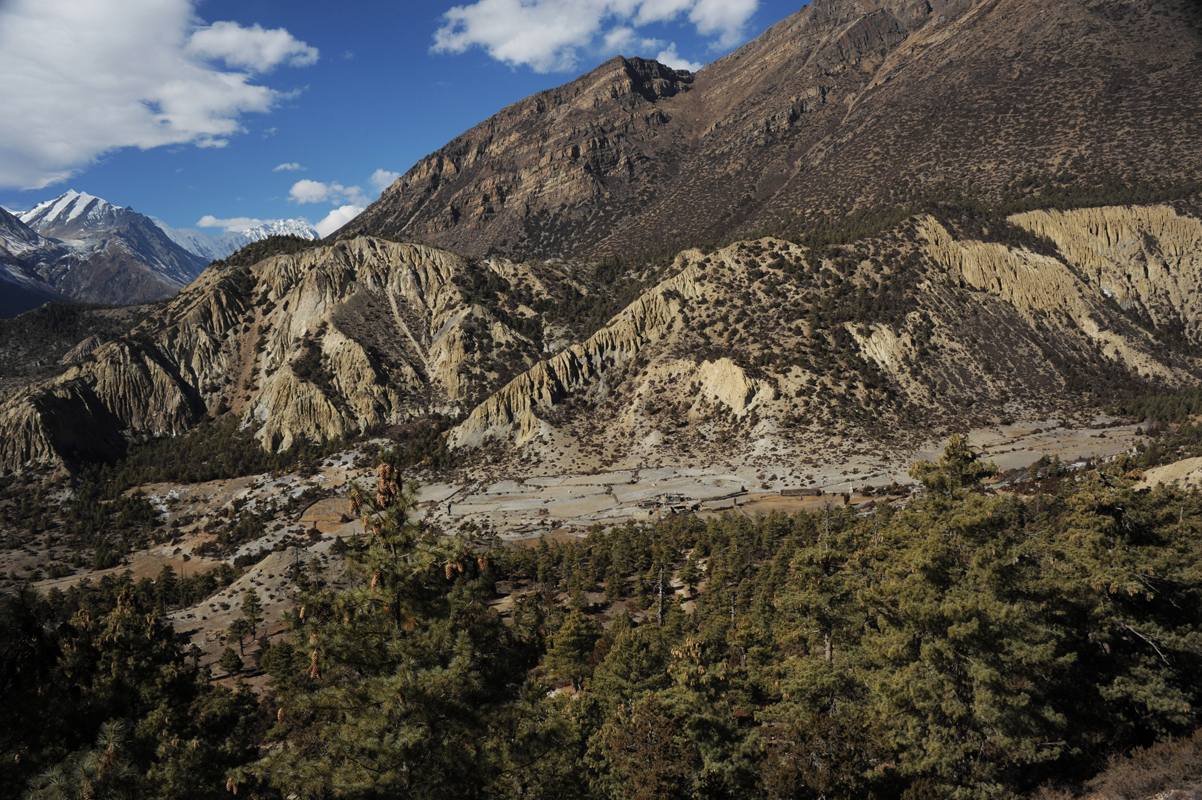 To continue you desent below the gompa throug a pine forest down to a side valley where you can see the few houses of Julu.