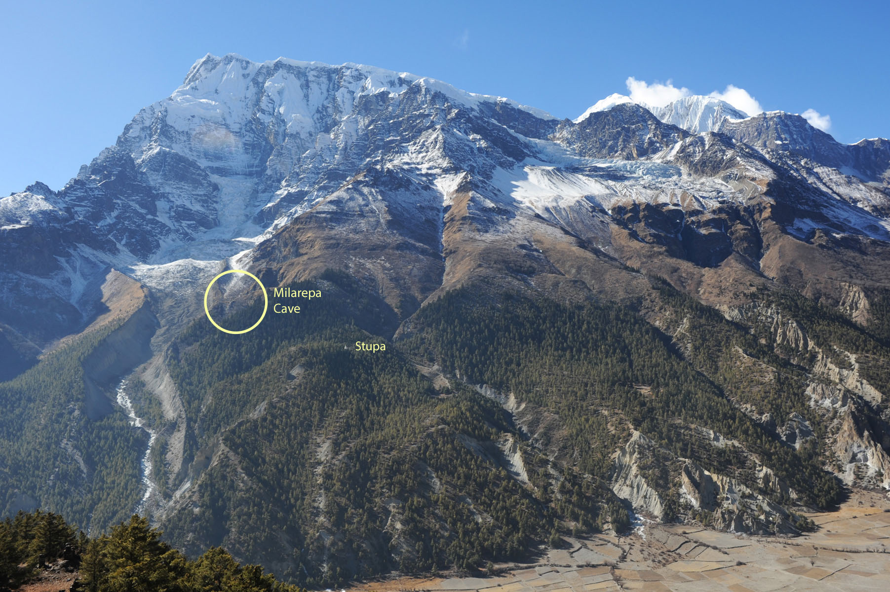 days later. It might be a good idea to leave your backpack at the lodge while you walk up to Milarepa’s cave. Pick it up on your return before you continue that afternoon to Manang.