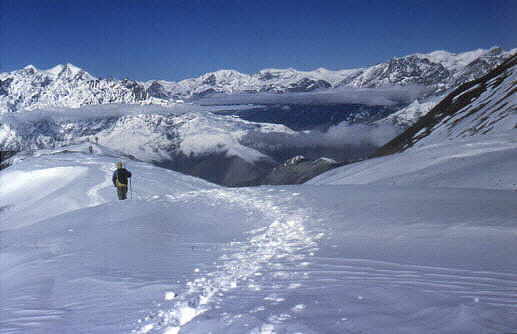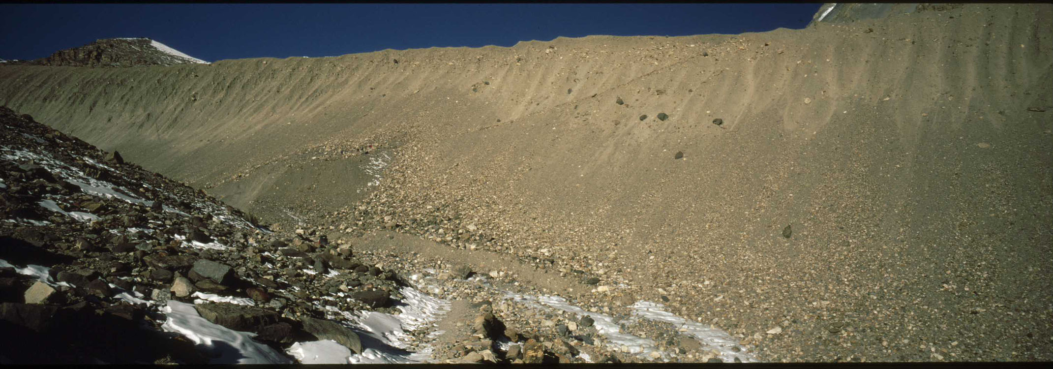 poles. It descends on barren dry and rocky terrain. Be especially cautious in the cold winter months. The afternoon sun will melt the surface snow and ice on the western slope. When it freezes again overnight, you