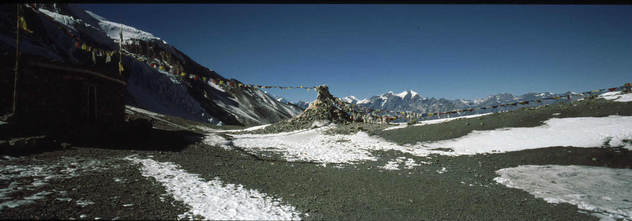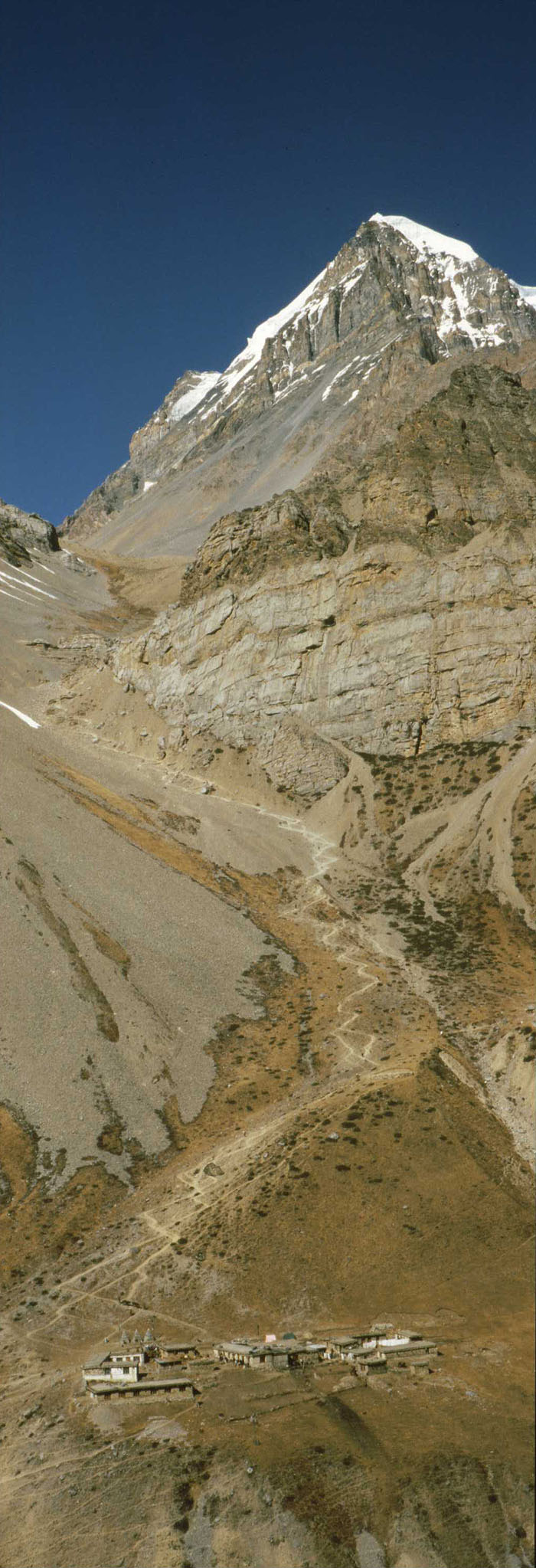Behind the lodge there is a long ridge with an awesome view at the top. Not only you can see Thorong Phedi deep below the rock wall, but you