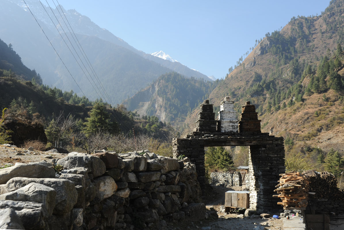 houses near the stupa in the centre of the village. The Gompa is rather new. Bagarchhap has been devastated twice during the past 25 years by big landslides