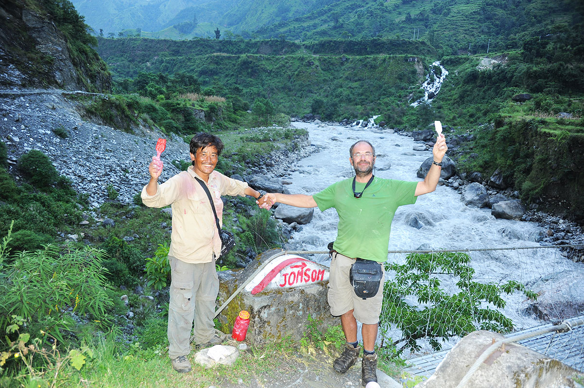 Finaly the whole Ac was marked from Besisahar to Tatopani! i hoppe that our marking will help oyu to find the beautiful NATT trail and enjoy again this marbvelous trekking area. Thanks also to the people of ACAP who helped us .