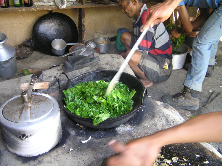 Later we found a solution. One of the porters was chosen every day to run ahead and order daal bhat for everyone. So our lunch break was reduced to half to one hour.