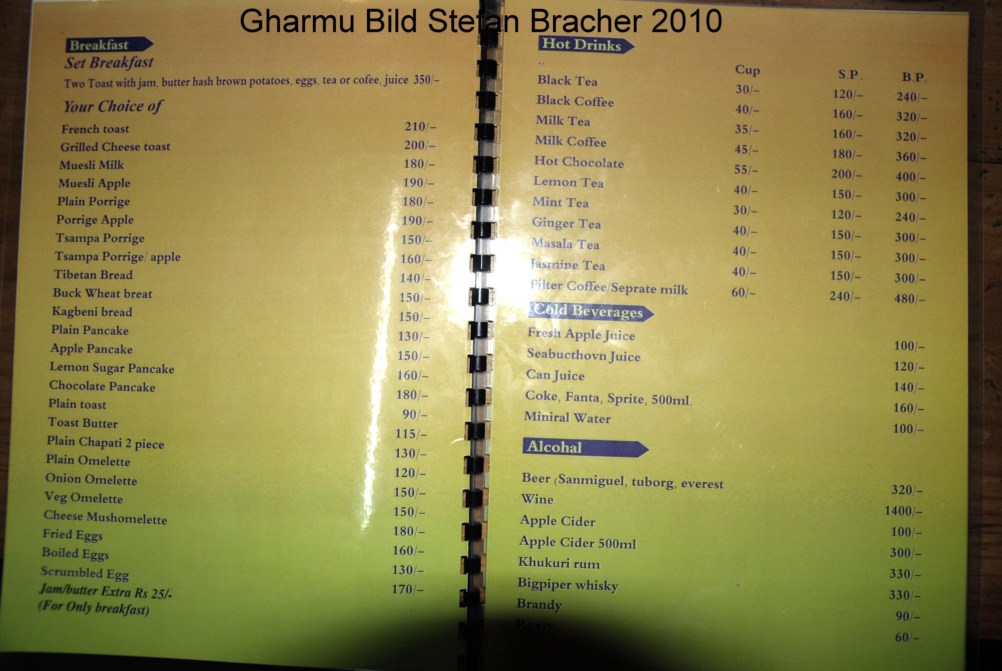 Ab 2010 würde ich gerne regelmäßig Fotos von Menükarten aus den verschiedenen Trekkinggebieten auf meiner Webseite veröffentlichen. Denn dann kann jeder sich ein Bild machen, wie viel er ungefähr