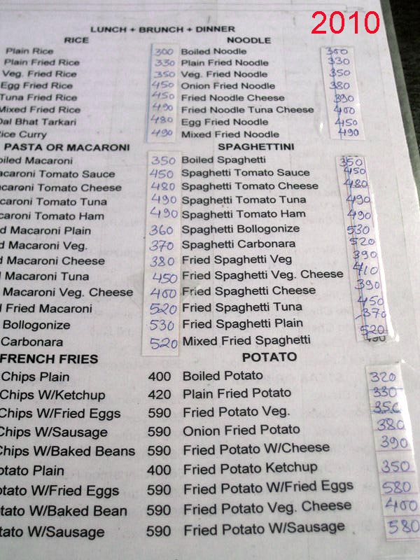 From 2010 on I would like to show pictures of menu cards. so every one could have a n idea how much money he will spend. I need oyur help for this. Please send me photos of menucards at namaste@nepal-dia.de so that i can publish them. Its like a puzzle - many small peaces give a nice picture so dont hesitate if you have just on ar afew pictures.