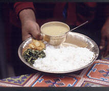 Die Nepalesen leben von zwei Dhal Bhats am Tag, dass erste um 11 Uhr morgens und das zweite am späten Abend. Berücksichtigen Sie dies, wenn sie mit einem Träger unterwegs sind. Natürlich brauchen