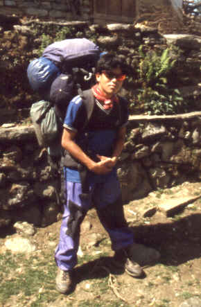 seinem Verantwortungsbewusstsein angetan. Ich bin seither noch 3 weitere mal ihm gegangen, unter anderem zum Tilichosee und in die ganzen Dörfer rund um Muktinath. Bachan spricht recht gut Englisch. Als ich im April 2001 wiederum mit 5 Bekannten unterwegs war, merkte man richtig, wie er sich immer darum kümmerte, dass es allen gut ging, so dass ihn auch die anderen in Ihr Herz geschlossen haben. Mittlerweile ist Bachan gut ausgerüstet und hat eigene gute Bergschuhe, eine warme Jacke und Sonnenbrille. Er ist mit mir auch schon im Schnee und über 5400 m unterwegs gewesen. Ich würde ihn aber noch nicht als Führer für eine Expedition ausserhalb der gängingen Wege empfehlen. Sollten Sie mit mehreren Leuten unterwegs sein, kann er auch andereFreunde beibringen, bisher waren sie immer sehr nett und gut.