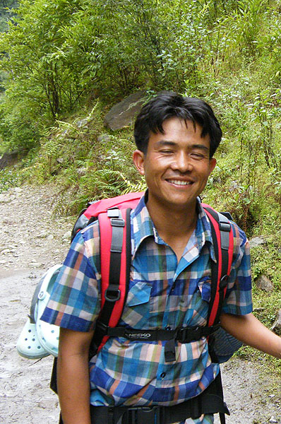 Karma ist 1987 geboren. Er ist ein Tibeter, lebt mit seiner Mutter in Marpha und arbeitet als Porterguide, hauptsächlich im Annapurnagebiet. Karma hat auch schon die Touren zu den Gipfel organisiert und geführt. Er ist mit uns in April 2004 der Jomsom/Muktinath Trek gegangen. Er kennt hervorragend das Annapurnagebiet und sehr viele Leute auf dem Weg. Letzt endlich ist er dort großgeworden. Dank ihm haben wir viele interessante Menschen und viele interessante kleinen Dörfern kennergelernt. Er war immer sehr loyal, freundlich und sehr taktvoll zu uns. Karma ist ein außergewöhnlicher und sehr intelligenter Mensch, der nie in seinem Leben einfach hatte. Sein Englisch ist sehr gut. Eine Tour mit ihm können wir nur empfehlen. Seine eMail ist. kartsewang@yahoo.com 17)