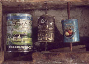 In den abgelegenen Dörfern findet man auch sehr häufig Gebetsmühlen, die aus Leder gefertigt sind.