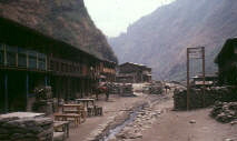 die Straße, denn danach trägt die Brücke keine Fahrzeuge mehr. Besisahar ist ein typisches Straßenenddorf mit den Lodgen und den vielen Läden für den täglichen Bedarf der