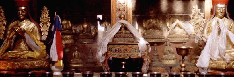 Gebetsbücher und an verschiedenen Stellen warteten schon die Mönche mit Ihren großen Trompetenhörnern.