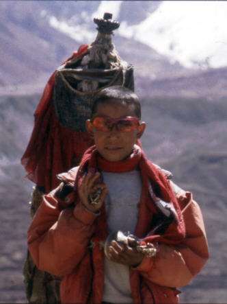 Nachdem er sich erst mit der sonnenbrille von Bachan forografieren lies, musste er schnell ins Dorf rennen,