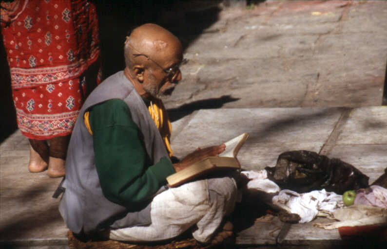 Hinduistischer Pilger beim rezitiern von heiligen Texten