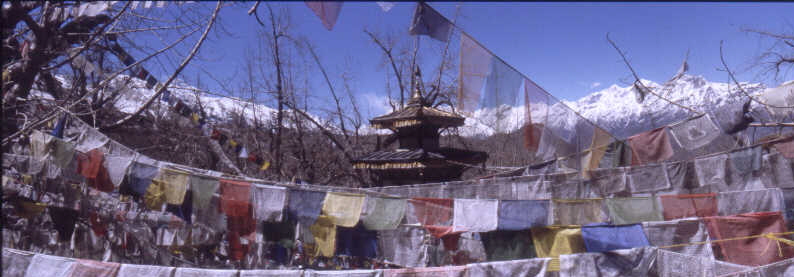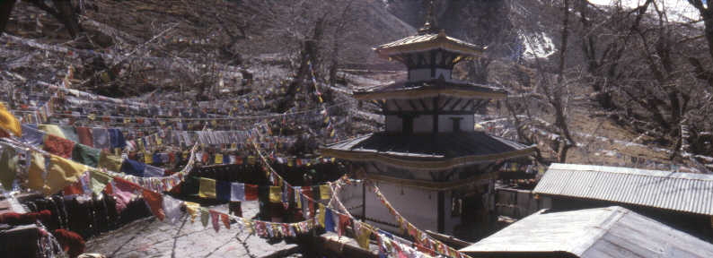 Ranipuwa, links im Bild der mächtige Daulagiri, rechts das Pilgerhaus, welches dem Dorf den Namen gab.