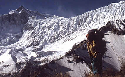 Khang kann auch von der anderen Seite im Annapurna Sanctuary gesehen werden. Vorne steht mein Freund und Porterguide Bachan Rai mit dem ich über den .See nach Jomson gegangen. bin