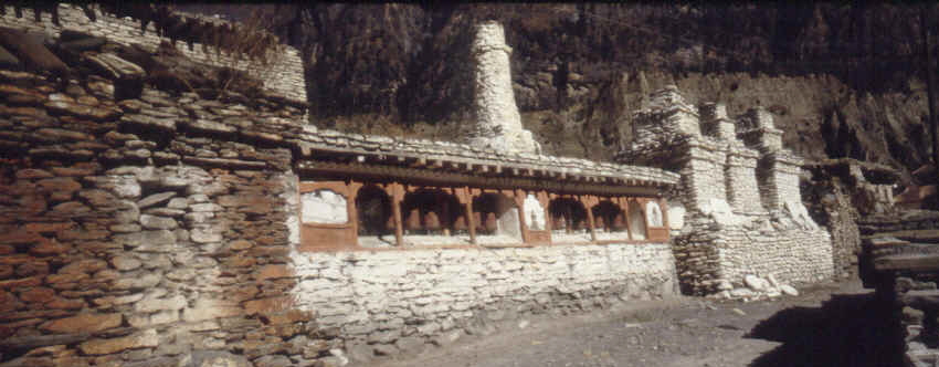 Ein kleiner Teil der riesigen Gebetsmühlenmauer