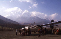 Dieser ist natürlich ideal um auf dem Treck ein- oder auszufliegen, denn man spart ca 5 Tage von oder nach Pokhara ein. So kommen dann auch zwischen sieben und neun Uhr morgens die ganzen kleinen Flugzeuge